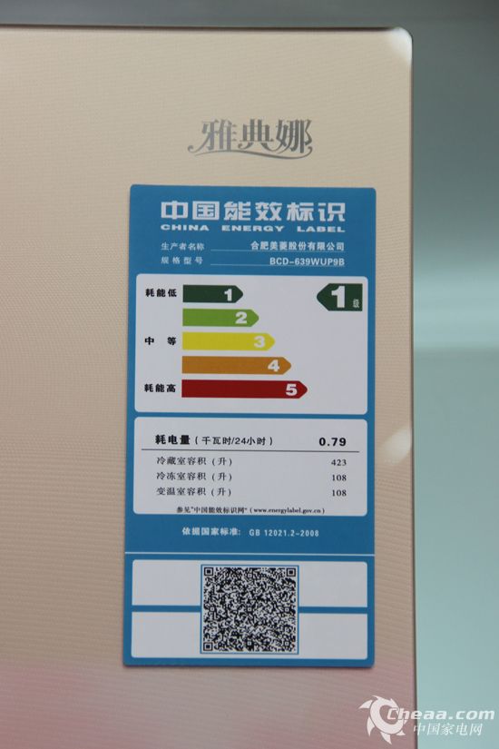 冰箱拥有598升超大容积,其中,冷藏室容积为375升,冷冻室容积为208升,超大组合冷藏冷冻空间完全能够满足全家最大食物储存需求。能耗方面,冰箱能效等级为1级,日耗电量为1.05千瓦时,十分绿色节能。